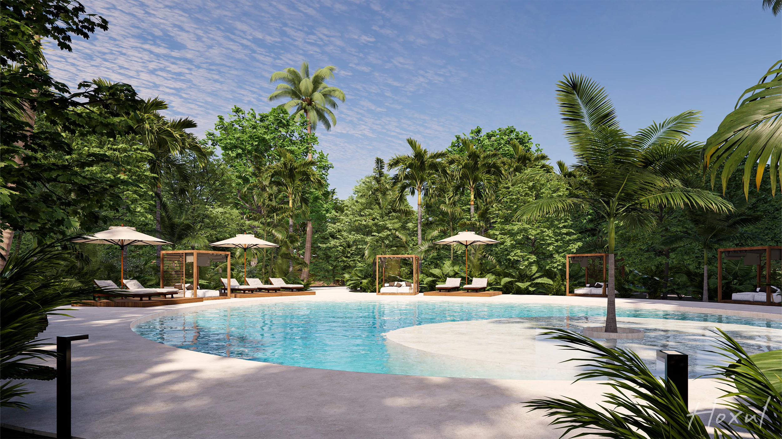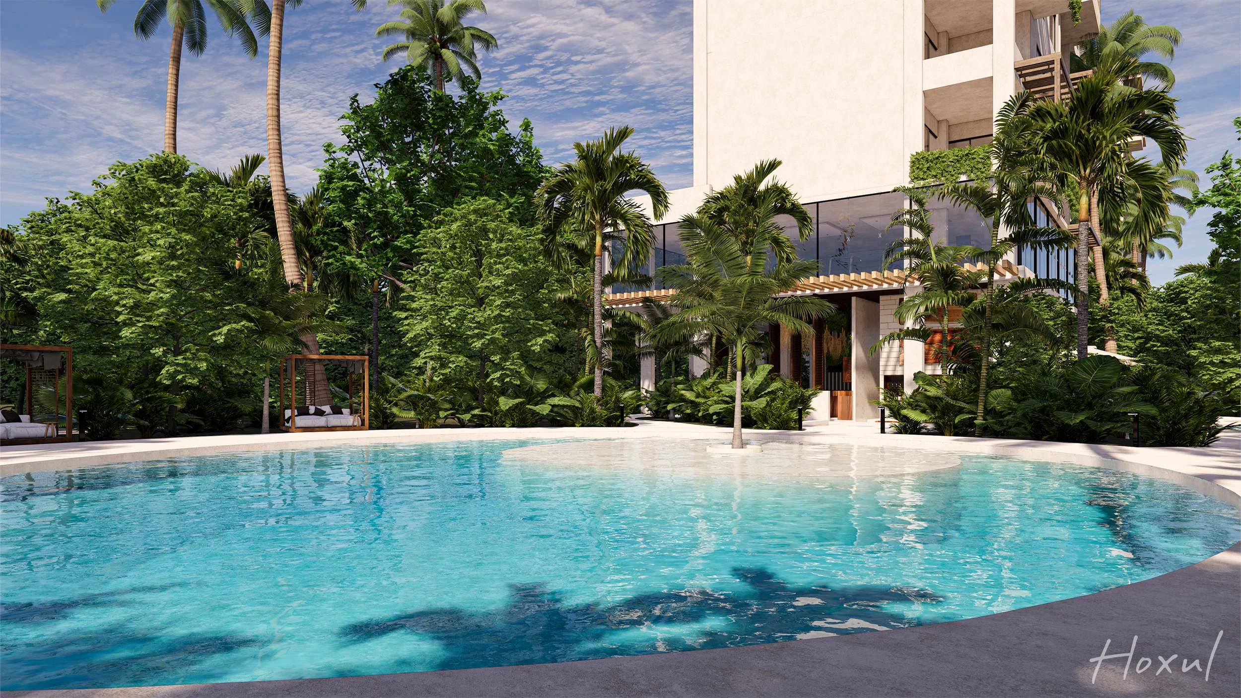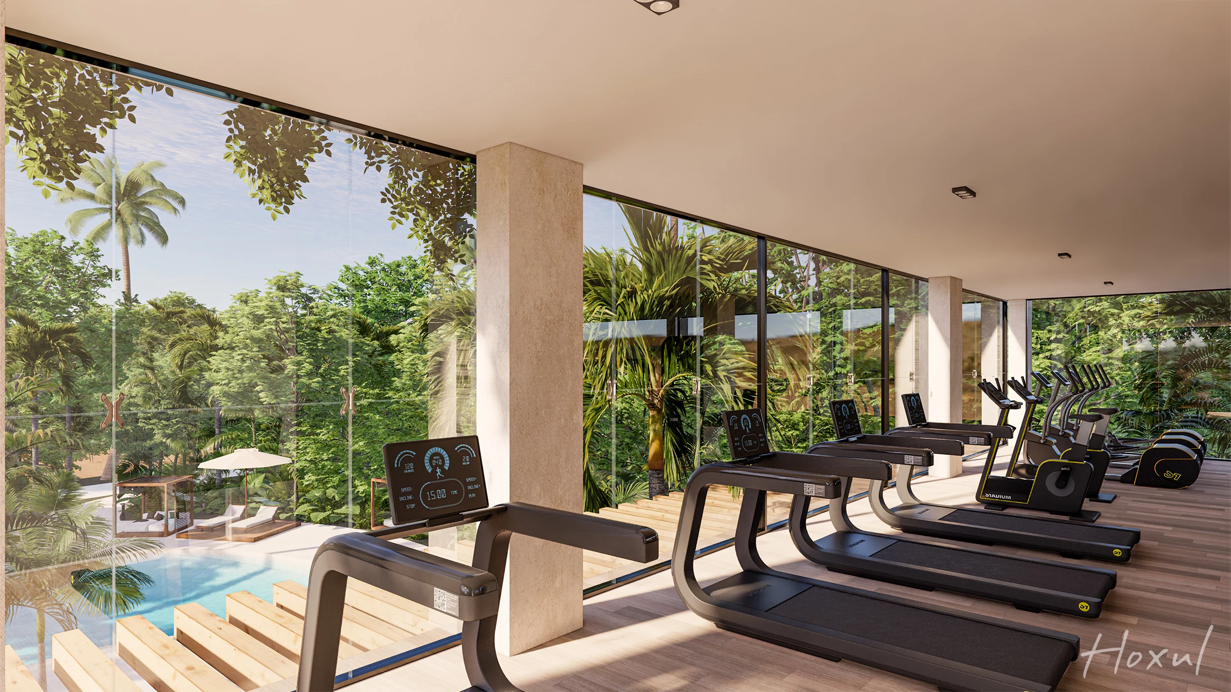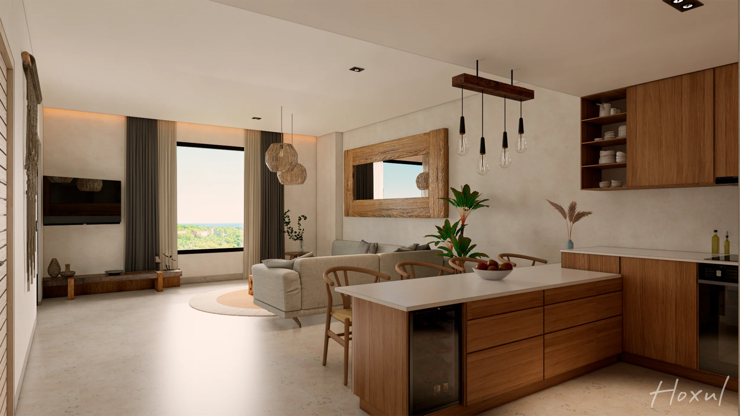 Perfecto para parejas, millennials o como inversión vacacional, este departamento de 91.72 m² ofrece dos recámaras, dos baños y una coqueta terraza con vista al verde campo de golf. Cocina equipada y cuarto de servicio se integran en un diseño eficiente y elegante, sumado al confort de un estacionamiento privado. Pensado para la vida moderna, combina funcionalidad urbana con la tranquilidad de un entorno selvático. Los residentes disfrutan de amenidades premium: alberca, gym, lobby y acceso privado a la playa. Hoxul es el balance ideal entre calidez, diseño y estilo resort.